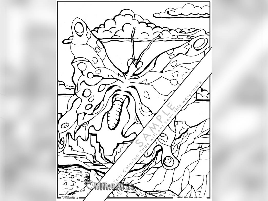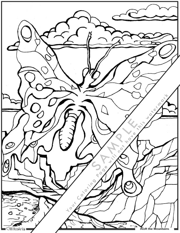 "Butterfly Aloft," my hand-drawn Butterfly Coloring Page