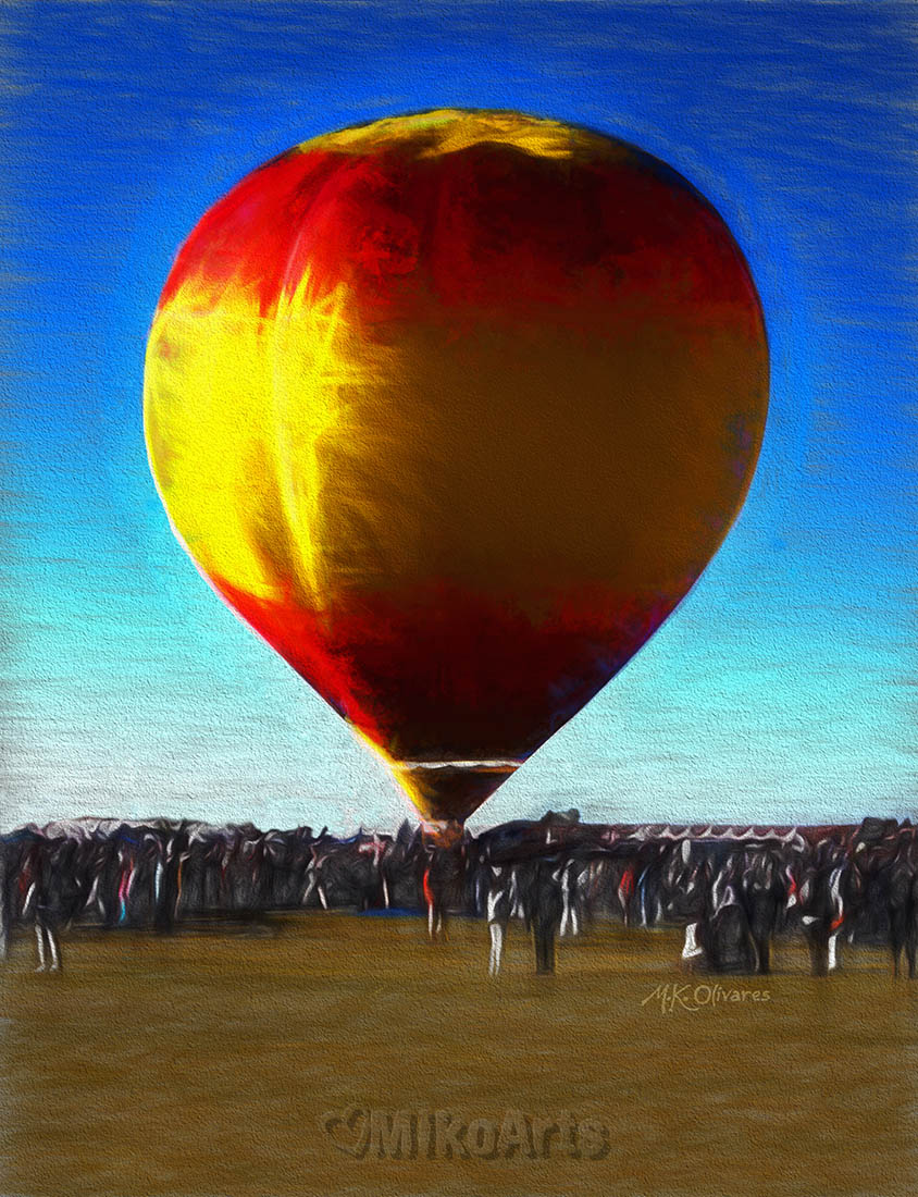 Amidst a gently gawking crowd, air itself lifts higher, freeing our visions with its own entrapment, magically revealing the power of energy and relationsip to lift us skyward, where imagination truly becomes a living dream. This is my feeling of watching the Ballons in the sunrise light, reflecting intensely off them...