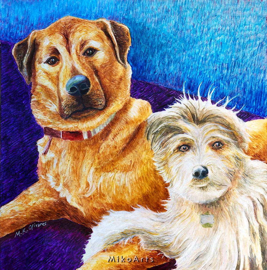 Look Who Arrived!, Doggie-Painting, Pastel & Copic on Canvas