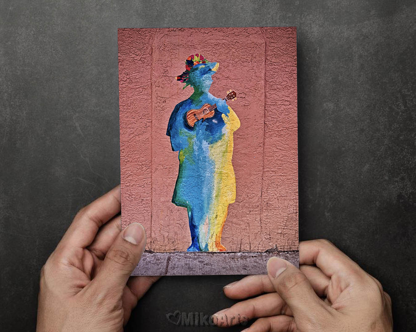 These cards of Rainbow Ukulele are printed on highest quality paper, designed by me from my photo-art, "Rainbow Ukulele" of a world-famous mural across from the University in Albuquerque. I made this for friends who wanted a cool, upbeat way to recall their visit or just have a glimpse of bright colorful music in their day!