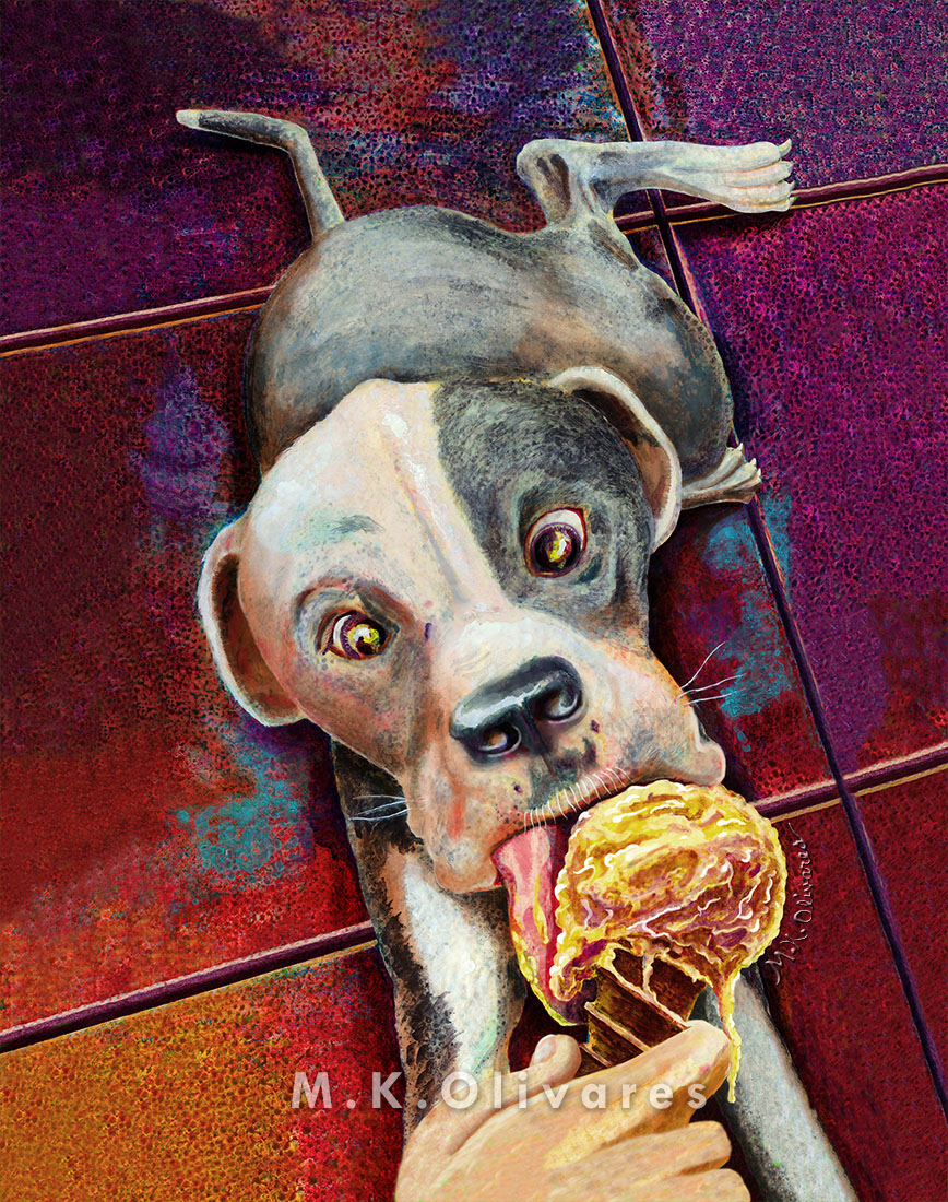 "Odin Gets a Treat," a painting I made of a Rescue Pitty in New Mexico