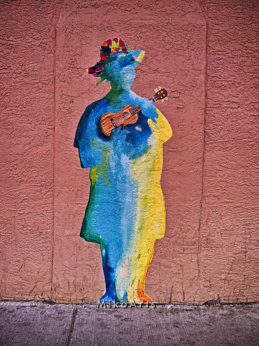 Another thing. Most murals we see on Instagram are the size of buildings. You could be miles away and spot a color of a mural from over the city's horizon. This colorful ukulele player on Central Avenue, is humbly standing "people-sized," in an anassuming spot but in clear view of thousands of people driving past every day. Yet very few even notice him.